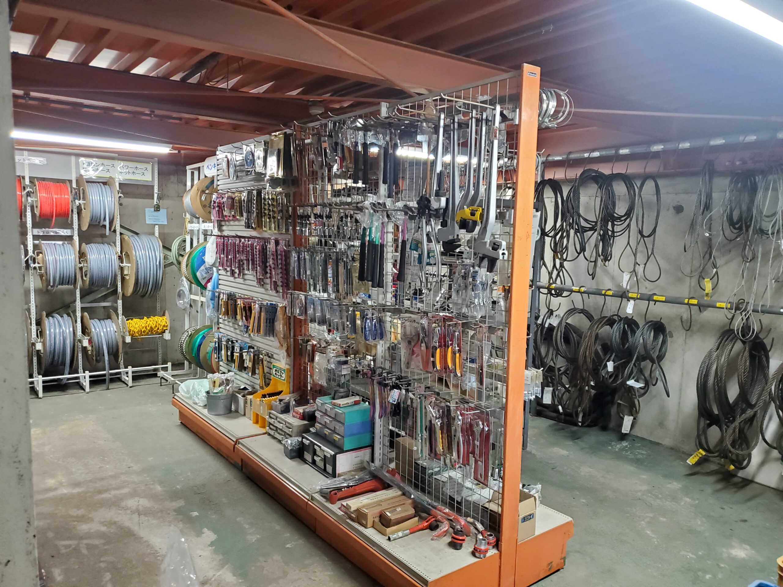 取り扱いをだいぶ縮小した金物・工具類は、在庫売り尽くしとなっていて秘密の地下室(笑)にホースやドリル、ボルト、ワイヤーなどを陳列してありますので、ご案内致します😊
