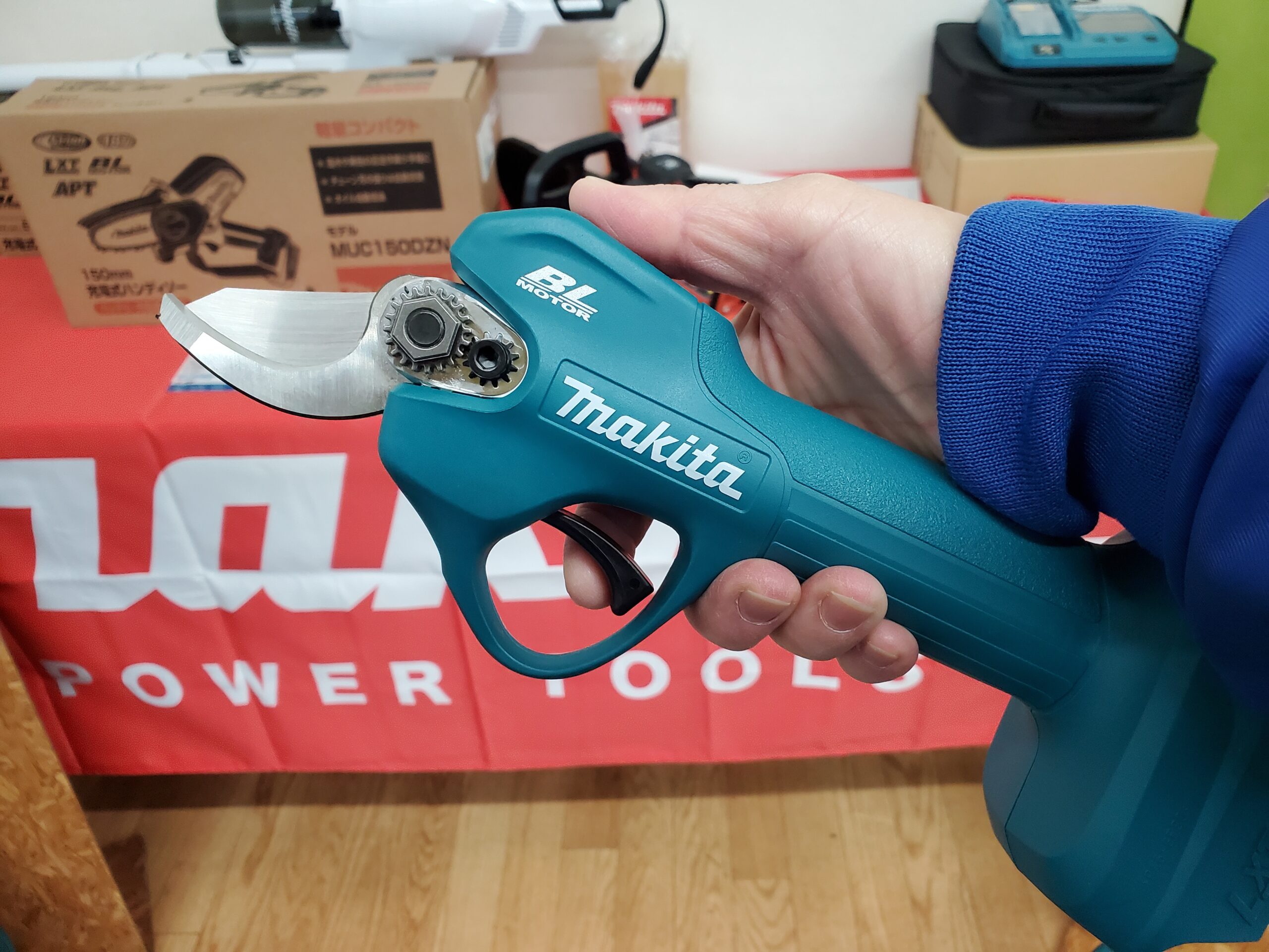 テツオ社長もイチオシの『充電式せん定ハサミ』18Vバッテリ直付けタイプ! 軽量だから作業も楽らくです。