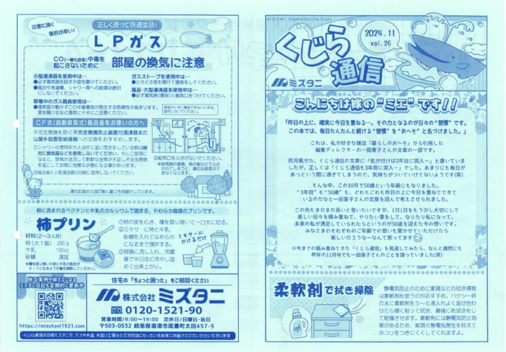 ミズタニでは、お客さまに『くじら通信』をお届けしています。