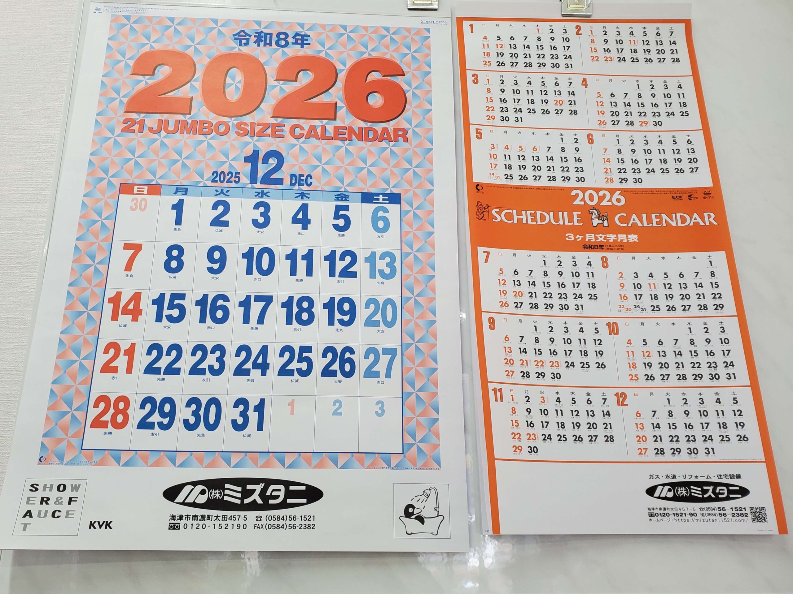 『ミズタニ2026年カレンダー』が順調にお届けできました。