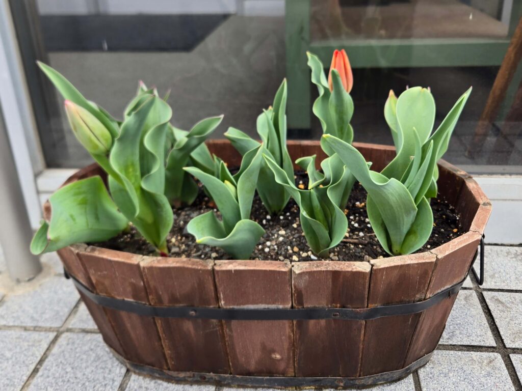 ミズタニの店舗前にもスタッフが植えてくれたチューリップの球根がすくすく成長していて、咲くのが楽しみです🌷🌷🌷