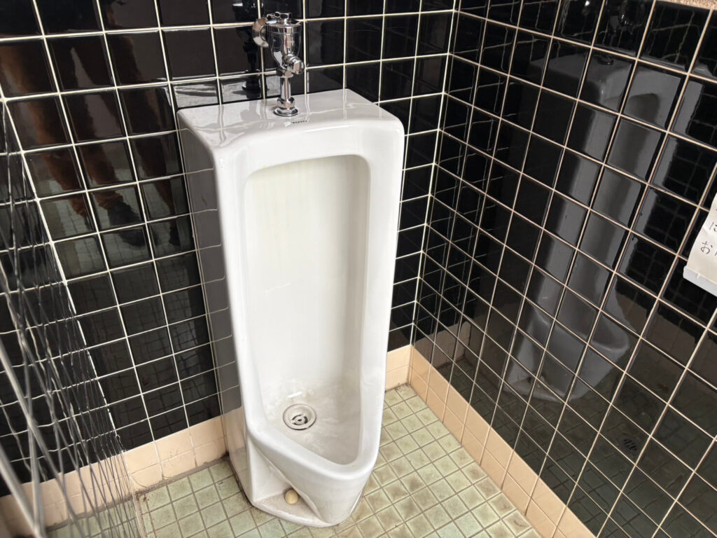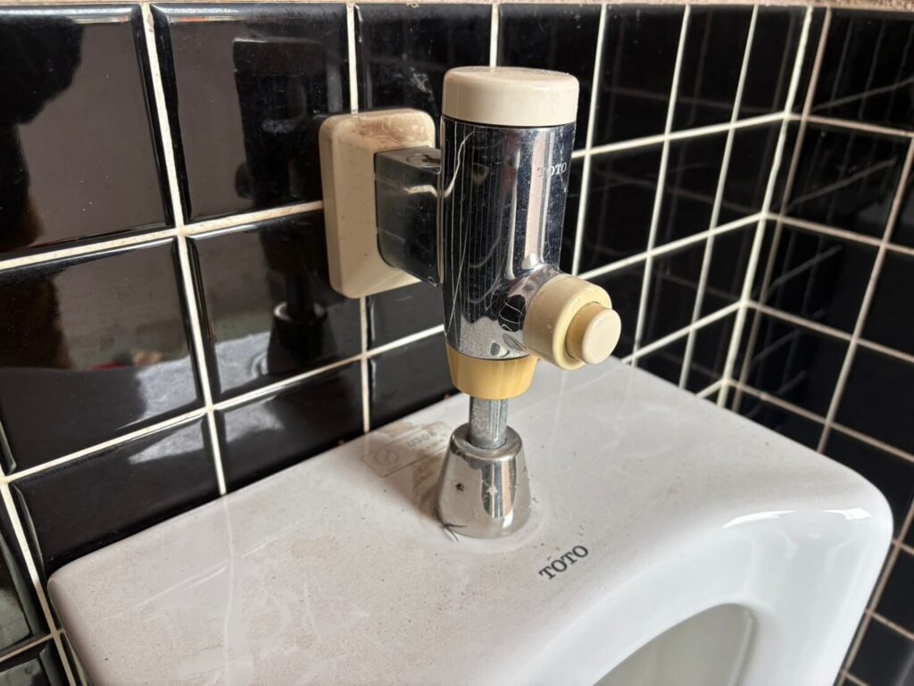 水が止まらないという小便器のフラッシュバルブのお取替えをしました。