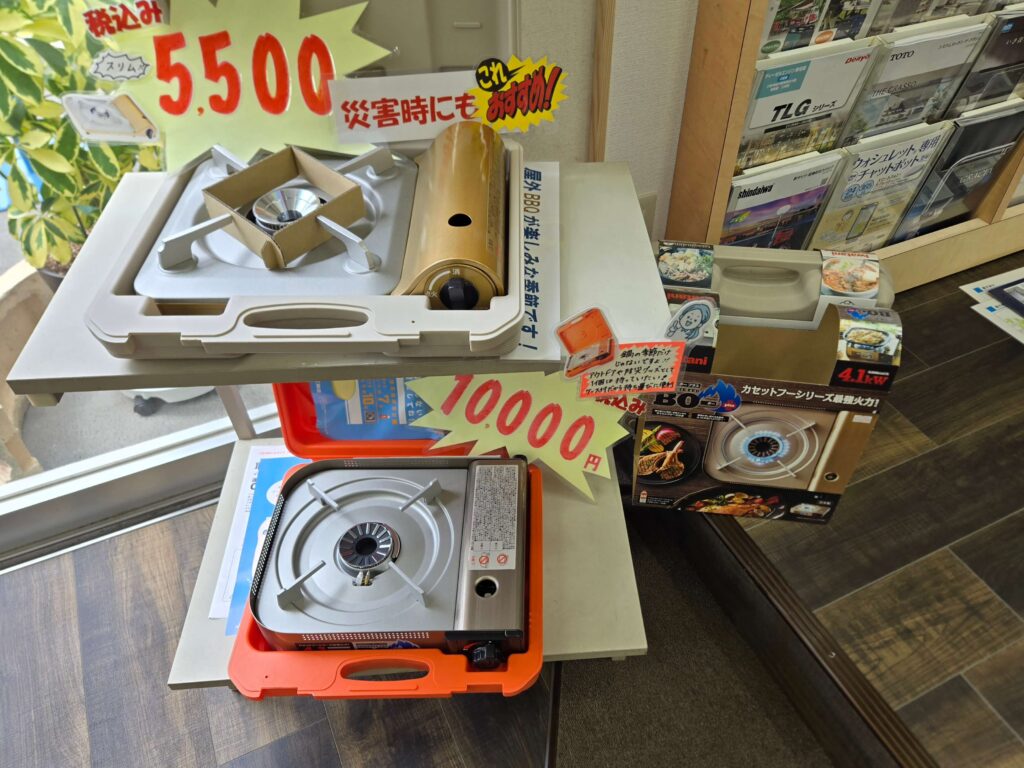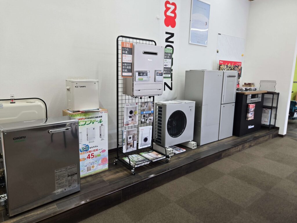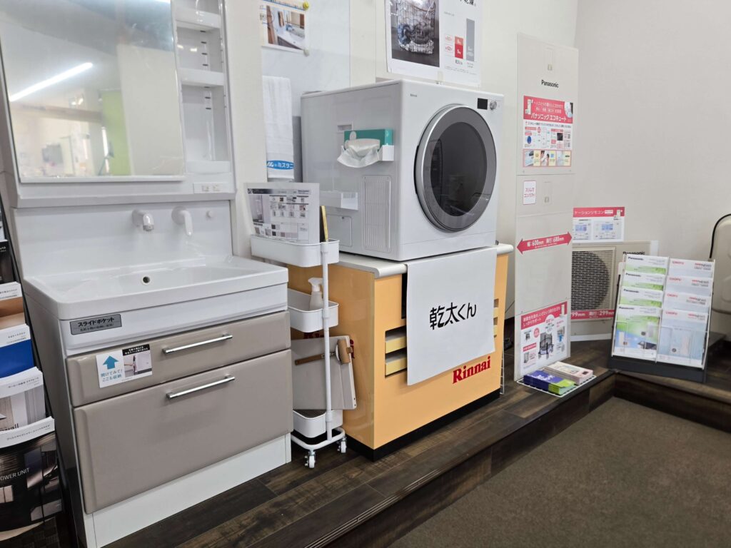 ミズタニ店内には、トイレ・洗面化粧台・給湯器・ビルトインガスコンロ・ガス衣類乾燥機乾太くんなどの展示をしてあります。