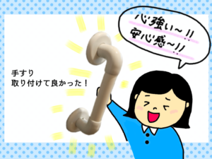 こんにちは嫁のミエです。 この場所に「手すり」があったら、安心して過ごせる!というお客様のご希望の場所に取り付けいたします。 先日は、神社のトイレに手すりを取り付 … 続きを読む そこに取り付けてあることで、毎日が安心して過ごせる『手すり』