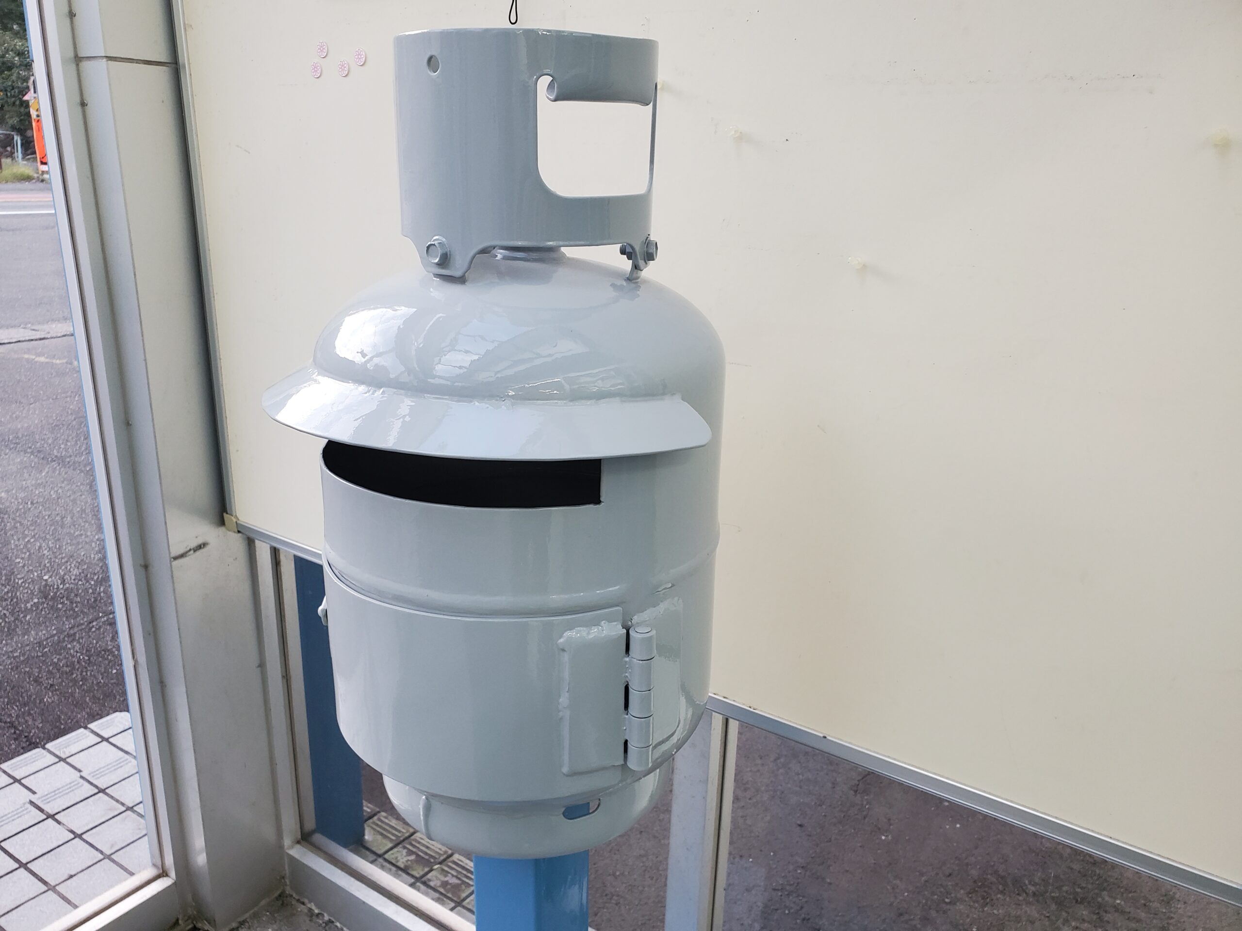 店内にひっそりと佇んでいるのは、ガスの廃ビンを加工して作った郵便ポスト
