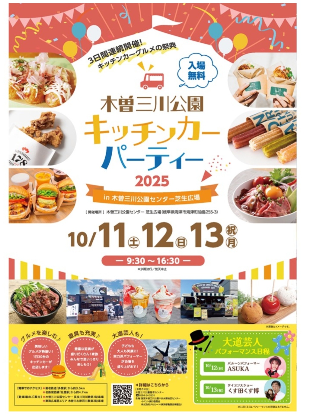 来週末の連休は、木曽三川公園で「キッチンカーパーティー2025」が開催されます!