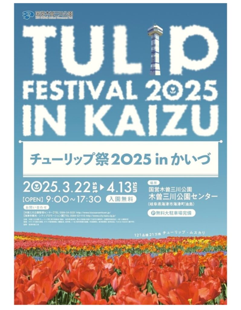 こんにちは嫁のミエです。 久しぶりの快晴です。 海津市のお出かけスポットのひとつ「木曽三川公園」もうすぐチューリップ祭りです🌷 冬のイルミネーションも好きですが、チューリップが敷地いっぱいに咲いている園内を歩くのも好きです✨ ... -