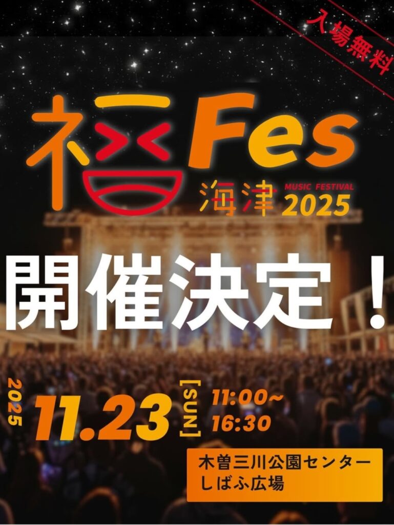 こんにちは嫁のミエです。 海津市制20周年記念事業のイベントで11月は野外音楽フェスティバル『福フェス』が開催されます! 出演アーティストも発表されましたね。キッチンカーもたくさん出店さ... -