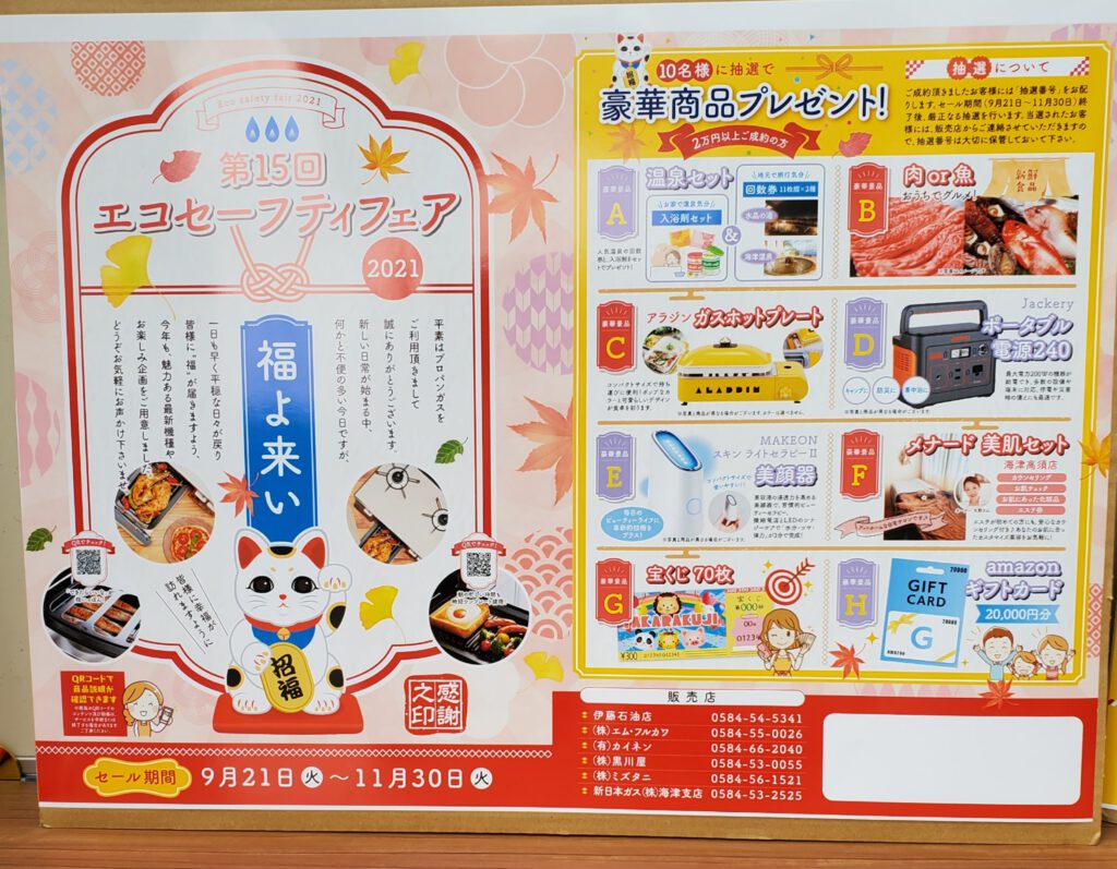 こんにちは嫁のmieです。 エコセーフティフェア9月21日(火)から始まります。 最新のガス機器をご用意しておまちしております☺ -