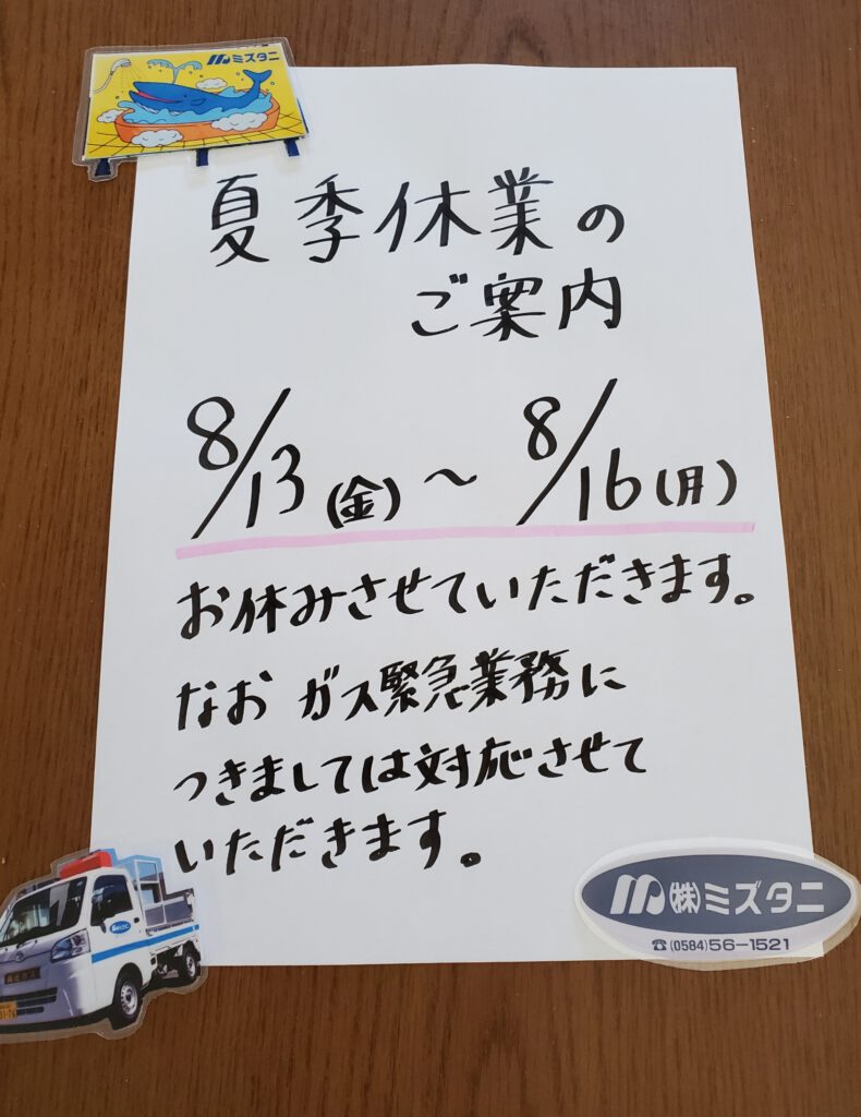 夏季休業のご案内