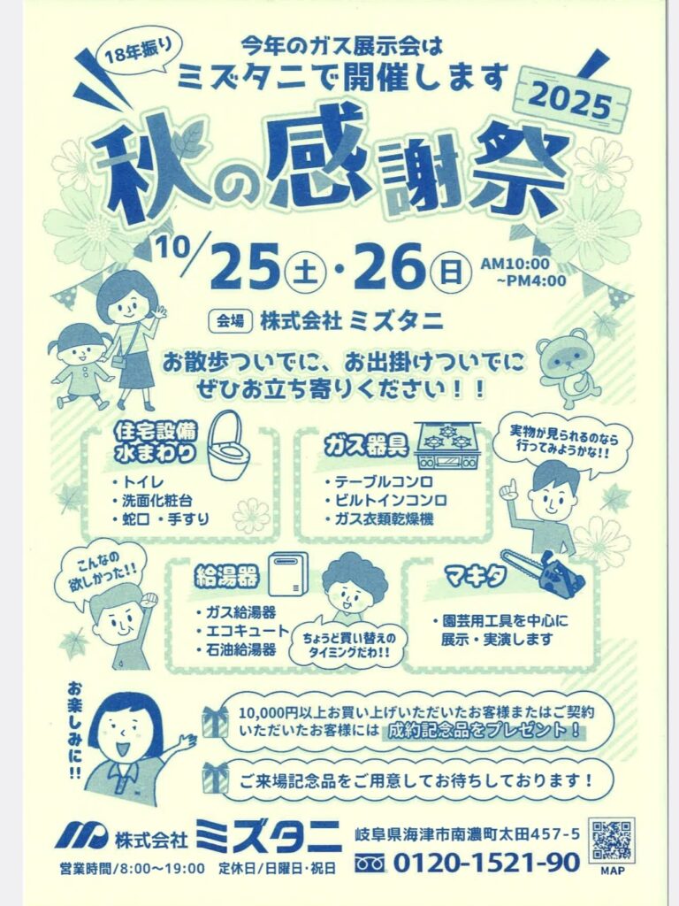 こんにちは嫁のミエです。 秋のキャンペーン開催中です🍁 10月25日(土)・26日(日)に開催されるミズタニ秋の感謝祭と併せて、こちらもよろしくお願いします。 ... -