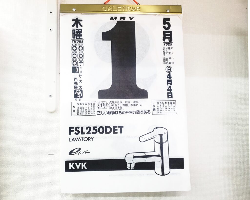 こんにちは嫁のミエです。 今日から5月!海津市は爽やかな気候になりました。 連休に突入している方もみえると思います。いかがお過ごしでしょうか。 今日のカレンダーは「レバー水栓」です😊 今月... -