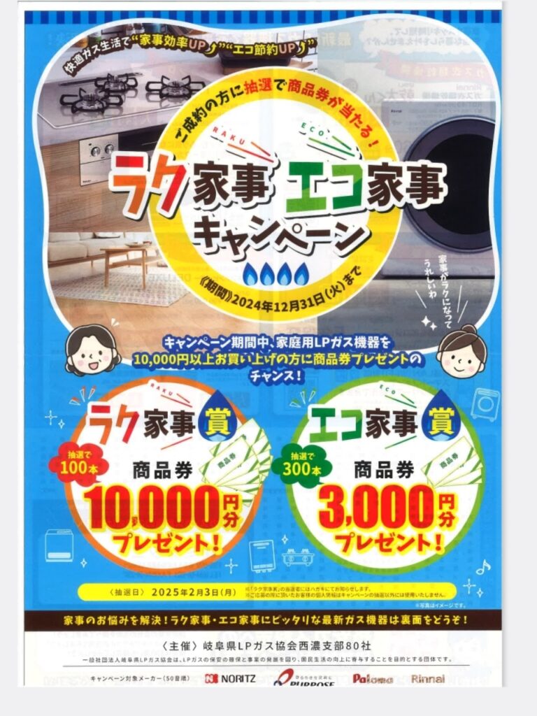 こんにちは嫁のミエです。 11月にガス展示会の開催を予定していてガス機器を展示会価格でご提供いたします✨ さらに、同時開催で期間中にガス機器をお買い上げの方に抽選で商品券が当たるキャンペーンもやってます! ...