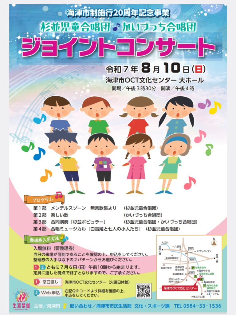 こんにちは嫁のミエです。 海津市制施行20周年記念事業がいくつか計画されているようです。楽しみですね✨ 今回のご紹介は、まだ少し先のイベントですが合唱団のジョイントコンサートです。 ... -