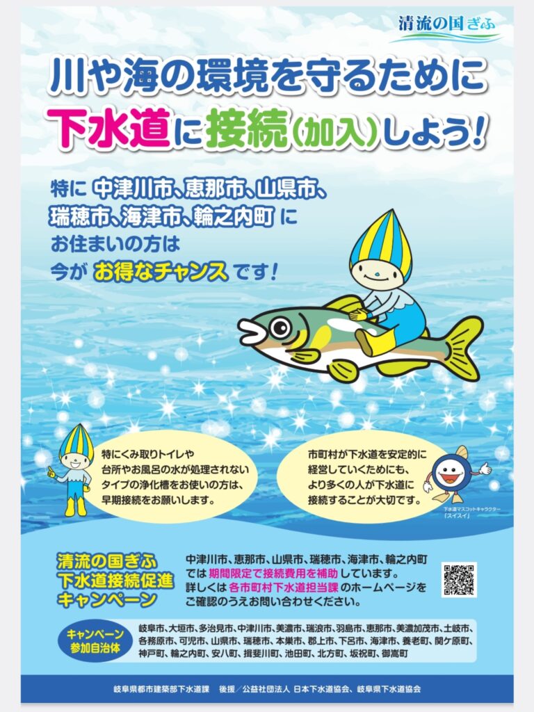 こんにちは嫁のミエです。 台所、洗面、トイレ、お風呂などの生活排水を公共の下水道へ繋げる接続工事は、お済ですか? 海津市の補助金制度を活用して接続工事をしませんか? 全国管工事業協同組合連合会特設サイトより ...