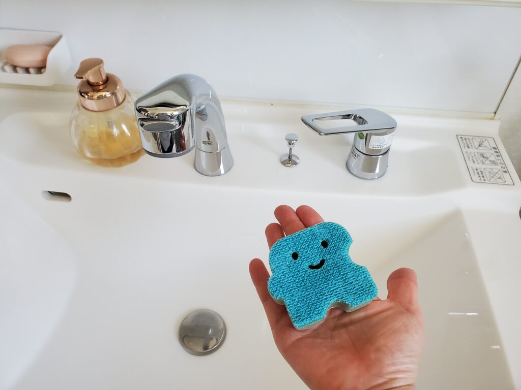 シンクや蛇口にはペタッと貼り付くミニスポンジが便利です!!