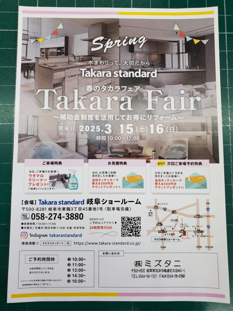 こんにちは嫁のミエです。 3月15(土)・16(日)にタカラスタンダード岐阜ショールームで「春のタカラフェア」が開催されます🌸 ショールームではキッチンやお風呂、トイレなどの最新設備を見ることができて、アドバイザーさんに何でも相談できる‼という... -