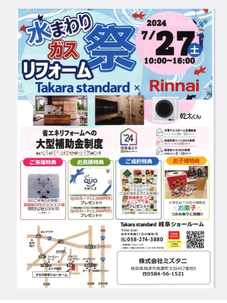 こんにちは嫁のミエです。 東海地方も梅雨入りしましたね。検針がスタートしたばかりなので、ミズタニとしては雨は困ります 畑にとっては恵の雨でしょか...。ほどほどに降ってほしいです。 今月はタカラスタンダードとリンナイのコラボイ... -