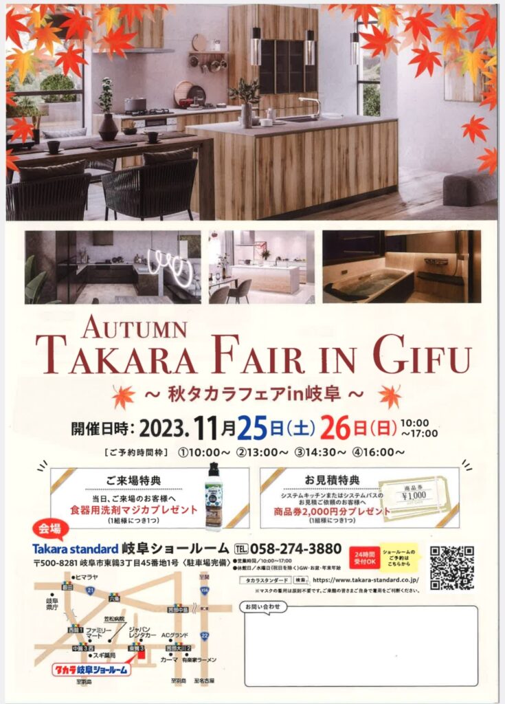 こんにちは嫁のmieです。 リフォームを考えたい‼最新の設備について気になる‼という方にショールーム見学がおススメです。 タカラスタンダード岐阜ショールームでは秋フェアが開催されます。ぜひ足を運んでみてください😊 場 所 タカラスタン... -