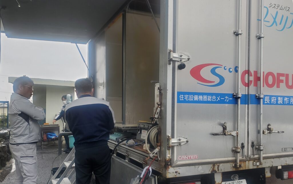 こんにちは嫁のミエです。 長府製作所のユニットバスの展示車両に乗って担当営業さんが来てくれました🚛 いろんな機能を説明してもらい勉強になりました✨ リモコンの「ふろ洗浄」スイッチを押すと、なんと浴槽内にお湯と洗剤を噴射して自動洗浄してくれる... -
