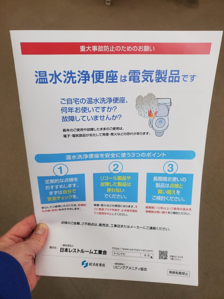 こんにちは嫁のミエです。 管設備組合から日本レストルーム工業会のパンフレットが届きました。 温水洗浄便座の使い方について掲載されていました。 誤った使い方をしていると腐食や劣化して故障の原因になります。パンフレットより一部抜粋してご案内しま... -