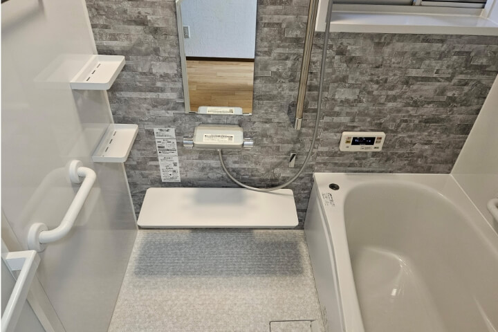 写真の例は、タイル張りの床や壁を断熱に優れた素材へのリフォーム事例です。冬場の浴室の寒さを軽減できます。